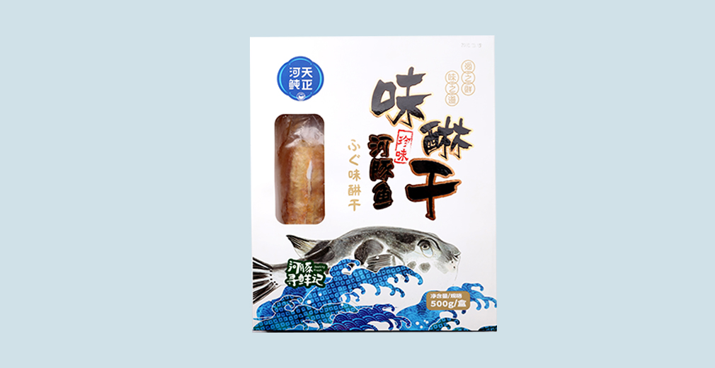 味醂魚干 天正味醂河豚魚干,用料嚴格、工序考究、傳承古法。我們?nèi)『与圄~精肉,去骨去膜、標準切割,經(jīng)數(shù)天低溫風干,祛除魚肉內(nèi)水分,再添加味醂調(diào)味料,浸入鮮甜美味。解凍后,烤箱烘烤便可食用。